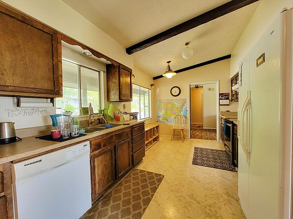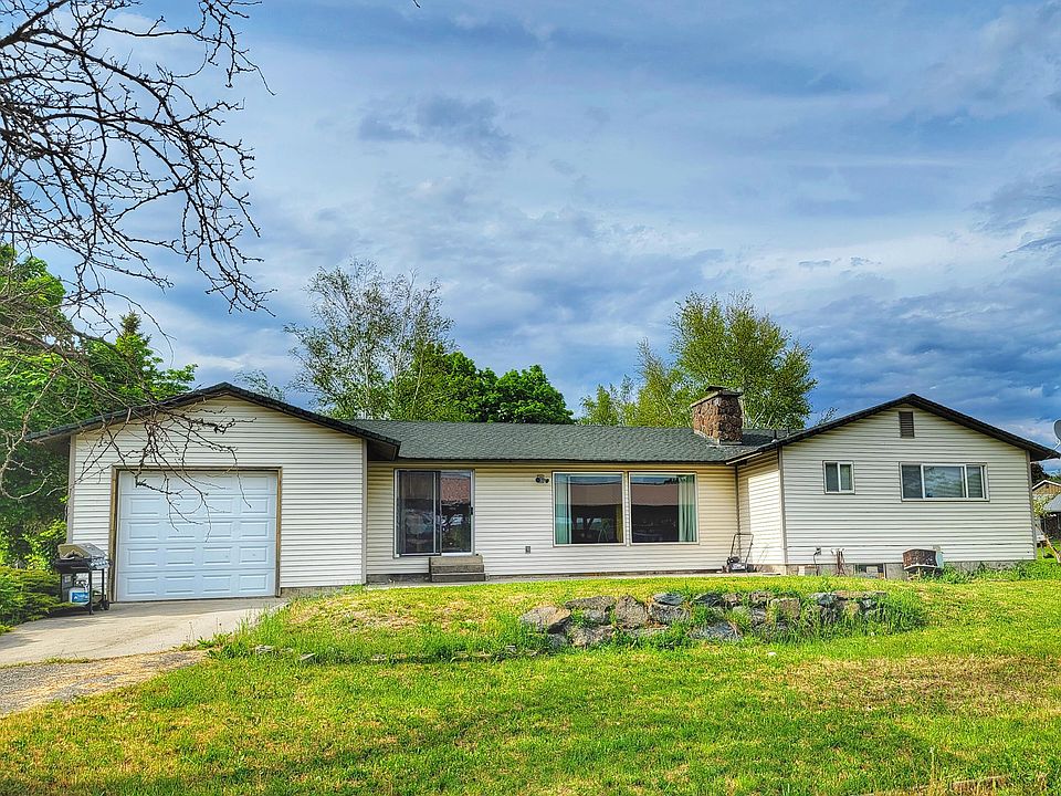 Come tour this large rancher on a full basement with 3+ bed, 3 bath, 3,000+/- sq. ft. home that sits on a corner lot, great location close to the hospital, schools, golf course, and the park. There is also a unique tandem drive through attached garage. This home offers main floor living including a sunken living room with vaulted ceilings, wood beams and a wood fireplace, main floor laundry, lots of storage closets, guest bathroom, the primary suite with 2 closets and 2 additional large guest bedrooms. The basement features a large family room, full bathroom, 2 non conforming bedrooms, and TONS of storage.