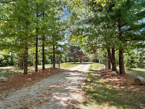 Contingent offer accepted, taking back ups . This historic one of kind home situated on 5 beautiful wooded acres with private lane adorned with trees. Fabulous kitchen features: hardwood floors~Grabill Cabinets with pull out drawers~quartz counter tops~ double oven~ smooth top range~ microwave~ dishwasher~ refrigerator (all stainless steel)~ breakfast bar, opens to breakfast room with hardwood floors. Step down into the warm and inviting family room with gas log stone fireplace with blower. You'll love the office or craft room with L shaped Amish made desk that was made to fit and will remain with the home. Formal living room with Berber carpet is just off spacious foyer entrance! Den with hardwood floors is just one of the many rooms for the family to gather! Main floor Mstr suite with hardwood floors, closets by Better Organized Spaces. Master bath with jacuzzi tub & walk-in shower,& custom cabinets by Colvin Bathroom. Six panel doors, Anderson Windows ,hardwood floors, custom blinds, generator, are just a few of the amenities this home has to offer. Full bath and 3 bedrooms with hardwood floors upstairs. Roof new in 2018, new water softener, Air conditioning new in 2019. Garage/outbuilding with attic storage. Just off the back entrance is the The 2nd outbuilding 24x48 separate electrical panel, floor drain, 2 heaters, built in work bench plus 13x20 covered concrete patio. Paths cleared to rear of property to creek. **