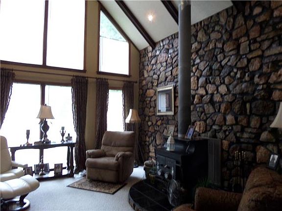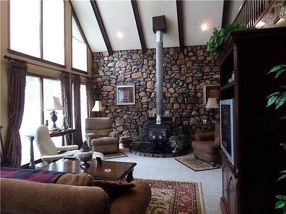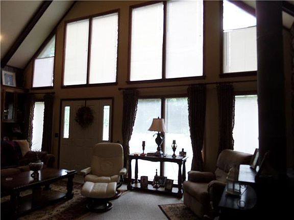 Enjoy this A shape ceiling with all the windows in the living room. There is a stairway that goes up to the second floor that over looks the living room. 3 bedrooms and 2.5 baths. There is a place for a beauty shop, that could be bedroom. 2 car garage