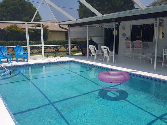 JUST REDUCED BY 10,000!!! Rare find. This 2/2 home has been completely remodeled. You will find this pool home with 2 car garage is in a highly sought after neighborhood of SE Cape Coral. New kitchen, new baths, new tile flooring through out, new paint both interior and exterior, new molding, new lightening, stainless new appliances. The updates are too numerous to list. Pool has been refurbished and landscaping is plush and mature! The lanai is perfect for entertaining with ample space for your guests to relax and enjoy the southern exposure sunshine! This home will not disappoint. You will fall in love as soon as you walk through the front doors. All assessments in and paid.