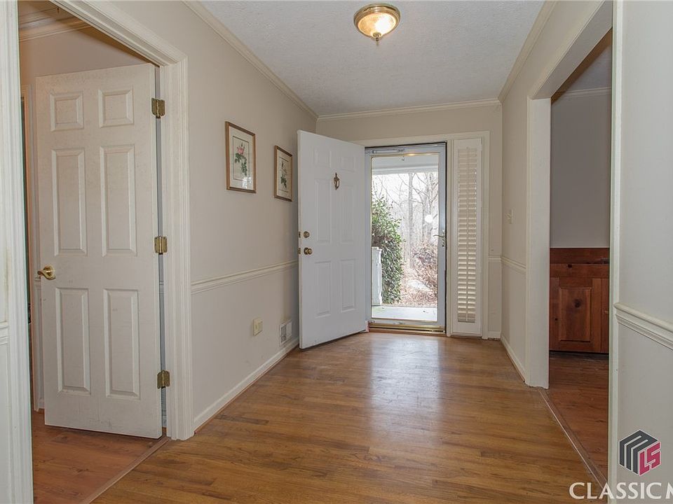 This single family ranch is located on a beautiful lot in the established neighborhood of Fernwood. It's in the highly sought after Dove Creek and North Oconee school district. The home features 3 bedrooms/ 2 baths, and a spacious layout ideal for everyday, comfortable living. The foyer opens up to a spacious dining or flex area and the oversized living room with built-ins, wet bar, and a gas fireplace. From the living room, you'll find a large eat-in kitchen with ample counter space and complete appliance package. Enjoy your morning coffee or relaxed evenings in the beautiful sunroom year round. Just off the kitchen you will find a nice sized laundry room/mud room. The owner's suite includes a large bathroom with windows providing natural light, 2 walk in closets, and a separate water closet. The secondary bedrooms are spacious with plenty of closet space and share the hall bath. Outside you will enjoy a large private and fenced in back yard with floating deck and stone paved patio. The two car garage includes custom workshop space with cabinets, shelving, pegboards, and extra lighting.