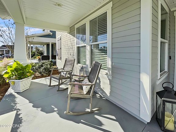 This SweetBay home is a rare opportunity for 3BR+bonus on desirable Chickadee Park! The expansive front porch is perfect to take in the views of lush landscaping with serene bay breezes. The spacious eat-in island kitchen with quartz countertops, walk-in pantry opens to a large family room with hardwood floors. The covered lanai is perfect for outdoor entertaining overlooking backyard with additional pavers, firepit and privacy fence complete the courtyard feel. The owner's suite has a tray ceiling, tile shower and walk-in closet. This home is better than new with significant upgrades. All within one of the most desirable master plan communities in the Panhandle. SweetBay amenities include several parks, pools, bay access and a grocery anchored town center and marina coming soon