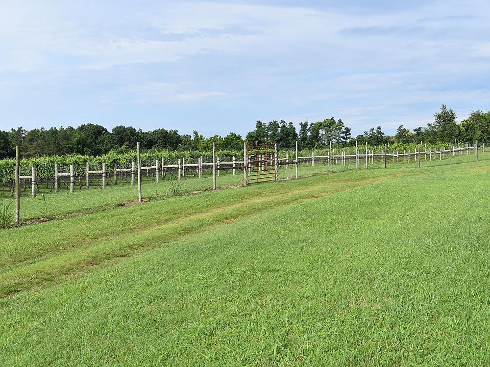 On offer is a beautifully sited, and well maintained wine-grape vineyard located in the Southern Virginia Wine Region noted for a warm to temperate climate, and good soil for winegrowing The 29.75 acres are located near Chatham and has ~ 4 acres under vine, approximately 5 acres in open fields, and ~ 20 wooded acres. Average elevation at the site is 900 ft. ASL, and the vines are planted with a nearly perfect north to south row orientation. This combination of elevation & sun aspect is ideal for vineyards. Planted varietals are: Cabernet Sauvignon, Petit Verdot, Traminette, and Muscat Blanc. Other improvements include full deer fencing, 30 x 40 metal utility barn, and a well (21 GPM). Equipment to convey includes 2 tractors, 1 Kubota RTV500, 1 Air Mist sprayer, a riding lawn mower, and more. There is ample space for a home which could also provide for a winery and tasting room if a terrace level basement plan is utilized. Come live the vineyard lifestyle!