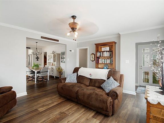 Upon entry, you'll be greeted by an inviting atmosphere highlighted by the seamless blend of modern updates and timeless charm. The main level features a spacious living room, perfect for relaxation or entertaining guests. The adjacent dining area flows seamlessly into the fully renovated kitchen, complete with stainless steel appliances and sleek granite countertops.