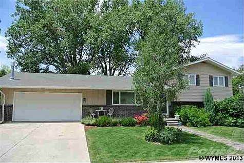 Fabulous great room w/ bamboo flooring; lots of new kitchen cabinets, upgraded appliances & concrete tops. Upstairs on oak hardwood are 3 bedrooms & a nicely updated bath; lower level has family room with walk-out to patio; laundry & .75 bath. Sprinkler system in front supports lush landscaping. No sprinkler in back. Backyard has privacy fence, 3 huge cottonwoods, lawn & large dog kennel. Oversized 2 car garage. Exterior being painted by professional painter July 9-13. Call Val Lathrop 307.267.7323. Brokered And Advertised By: Equity Brokers, Inc Listing Agent: Val Lathrop