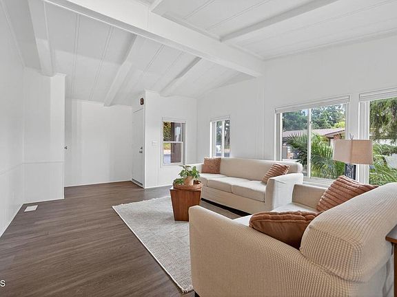 Welcome to Rancho Ventura, a sought after 55+ gated community where affordability meets comfort and convenience. This completely detached manufactured home comes with the land, offering one of the best values in Ventura with a low HOA of just $360 per month. The home features a spacious two-car garage and a private yard, creating the perfect blend of independence and security. Inside, you'll find high ceilings and thoughtful upgrades throughout. The kitchen showcases newer quartz countertops, freshly painted cabinetry, and a custom tile backsplash. The generously sized primary suite includes a walk-in closet and a beautifully remodeled bathroom. Additional highlights include dual-pane windows, a private indoor laundry room, upgraded door hardware, and a recently serviced central A/C to keep you cool year-round. The HOA provides peace of mind and a resort-style lifestyle with access to a sparkling pool, relaxing hot tub, clubhouse, billiard room, greenbelts, RV parking, and more. Utilities such as basic cable, water, trash, and sewer are also included. Conveniently located near shopping, the Ventura County Government Center, and with easy access to the 101 and 126 freeways, this home combines comfort, affordability, and an unbeatable location.