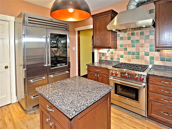This home embodies timeless charm with a cobblestone street leading to its doorstep. Inside, a living room boasts a decorative fireplace and a bookcase with a glass door, adding sophistication. A formal dining room offers an elegant space for gatherings. The kitchen is equipped with granite counters, a Wolf stove, and a Sub-Zero refrigerator, catering to culinary enthusiasts. Hardwood and pine floors exude warmth and character throughout. A large front porch invites relaxation, while a back deck extends outdoor living. A 3-car garage provides ample storage and convenience. With a full basement offering potential for additional space, this home seamlessly blends luxury and functionality, providing a haven for modern living with classic appeal. 3rd bedroom currently used as office. Enclosed commode in basement plus 2 extra storage rooms! Think wine cellar!