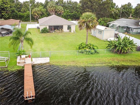 91 feet of waterfront living with your own boat launch and fenced in yard! NO HOA!! This newly 2014 built home is lightly lived in with many upgrades. Ceramic tile throughout, 5 1/4" baseboard, raised kitchen cabinets to the ceiling, crown molding, extra long garage for your boat or full size truck or SUV. A unique ensuite is located off the screened in patio which is convenient for guest. This home has 4 bedrooms and 3 full bathrooms. The backyard faces East for amazing sun rises with several banana trees, avocado tree and more. The large shed is bolted down to a concrete pad and adds additional storage and/or a great area for a work shop.