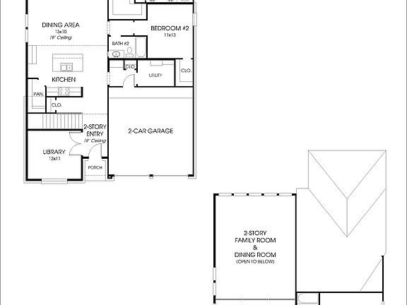 Two story entry. Library with French doors. Kitchen features an island with built-in seating space and a large walk-in pantry. Dining area leads to the two story family room with a wall of windows. Private master suite with three large windows. Double doors lead to master bath with dual vanities, a separate glass enclosed shower and a large walk-in closet. Utility room leads to the three-car garage. Covered backyard patio.