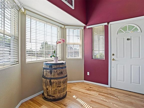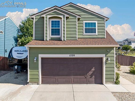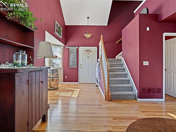This remarkable residence is located within a quiet, well-kept neighborhood in the city of Fountain. Upon entering through the front door, you'll find gorgeous hickory floors throughout the living room and dining area. A tile surrounded gas fireplace in the living room makes it a warm and inviting place for entertaining family and friends or for quiet relaxation. The dining area has a view of the beautifully landscaped backyard and the sliding glass patio door walks-out to the wooden deck which boasts a newer hot tub that is included with the home. The kitchen is located right off of the dining area making it a great place to congregate. The painted wooden cabinets provide ample storage space and there is plenty of counter space making it a great space to put together home cooked meals. To round out the main level, you'll find a convenient powder room for guests. As you climb the stairs to the second level, you'll find a loft area that can be used as an office or study space. The primary bedroom features a ceiling fan, a luxurious on suite bathroom complete with a double vanity and a custom tiled walk-in shower. There is a walk-in closet off of the primary bathroom. The upper floor has two additional bedrooms and a full bathroom. Down in the basement, you'll enjoy a newly carpeted family room with built-in shelving, a full bathroom as well as a laundry room with a sink. Enjoy the tranquility of a beautifully landscaped backyard with no home directly behind providing an added layer of privacy. For recreational enthusiasts, there is RV parking on the side of the house. This home is truly a gem and a must-see!