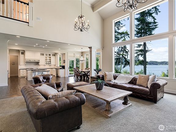 Experience unmatched luxury in this waterfront masterpiece. Crafted with meticulous attention to detail, this home epitomizes quality and comfort by combining sophistication with practicality. With over 500 ft of low bank waterfront, enjoy breathtaking views of Eld Inlet and Mt. Rainier. Your private, five acre gated property is perfectly complemented with mature landscaping, forestry and stunning koi pond. Offering multiple indoor and outdoor living spaces, soaring vaulted ceiling, expansive windows, and in ground hot tub, this modern lifestyle home was designed to accommodate both large gatherings, and intimate affairs. Nearby to schools, shopping, freeway, and other amenities.
