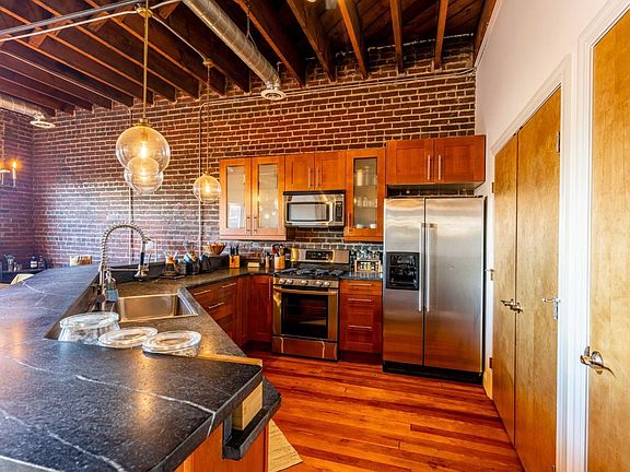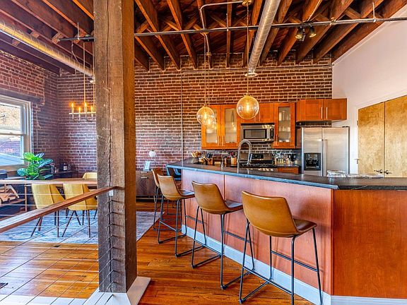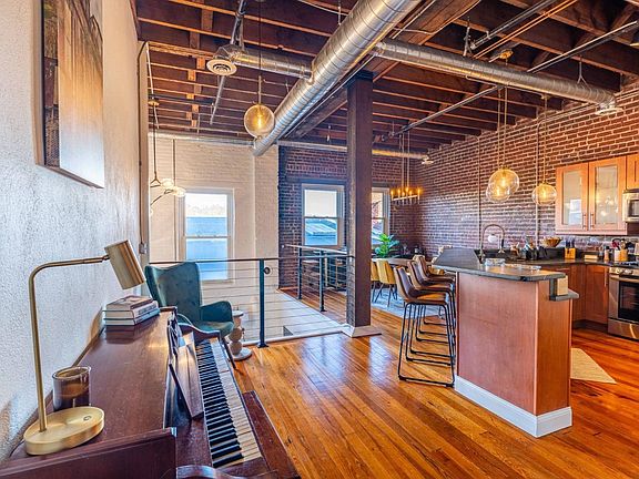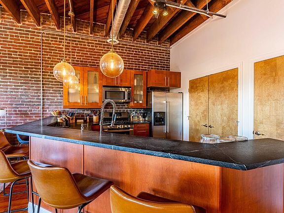 Gorgeous Midcentury Modern Condo in the heart of Downtown!! This one is not going to last long! Enjoy living in luxury with beautiful soapstone countertops, stainless appliances including washer and dryer, and stylish light fixtures through out. Fall in love with the exposed brick walls and ceilings. The home has three bedrooms and 2 beautifully renovated baths. Primary bedroom is soundproofed for extra privacy and comfort. The location couldn't be better for downtown living just across from the community market! Schedule your own private showing today for this beauty!!