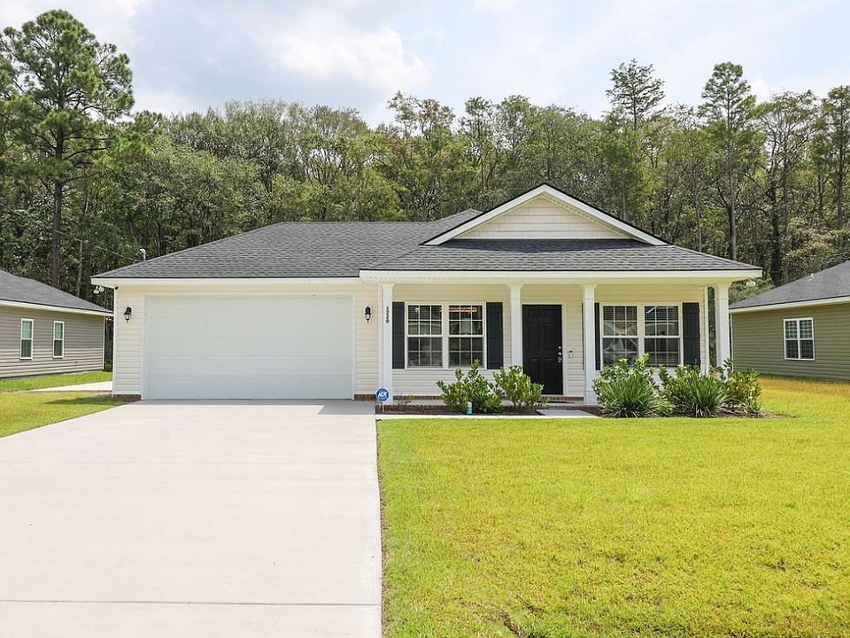 Welcome to this stunning, newly built home located in the historic city of Darien. Completed in 2022, this 3-bedroom, 2-bathroom residence offers modern living with a touch of elegance. With 1,232 square feet of well-designed space, this home features an open concept layout perfect for both entertaining and everyday life. The kitchen is a chef’s dream, equipped with stainless steel appliances, granite countertops, and a garbage disposal. An added ventilation system ensures a fresh and pleasant cooking environment. The spacious living and dining areas are highlighted by a new chandelier and upgraded lighting fixtures, creating a warm and inviting atmosphere. The large master bedroom is a true retreat, featuring a custom closet and an en-suite bathroom with ample space. Two additional bedrooms provide versatility for guests, a home office, or a hobby room. Luxury Vinyl Plank (LVP) flooring and wood blinds are installed throughout the home, adding a touch of sophistication and easy maintenance. The two-car garage is equipped with shelving for maximum storage, and an additional pantry offers even more space for your essentials. The attic is the entire size of the house, so there's lots of extra space and with spray foam insulation the home is very efficient. For outdoor enthusiasts, a concrete slab has been added for boat or RV storage, making it easy to explore the beautiful surroundings of Darien without worrying about where to keep your recreational vehicles. This property is free from HOA restrictions, giving you the freedom to enjoy your home without additional fees or regulations. Don’t miss out on the opportunity to own this exceptional home in a charming and historic location. Schedule a showing today and experience the perfect blend of modern amenities and timeless appeal!