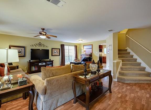 Highly upgraded Home with a private backyard! This home has laminate wood floors and Tile throughout. Gorgeous custom Kitchen with Rich cabinetry, granite, Stainless appliances, and tumbled travertine back splash. Spacious rooms. The master suite is huge and has a custom closet (her dream closet). 4th Bedroom is huge and is being used as a teen room/gameroom. Tons of storage. Beautiful low maintenance landscaping and a relaxing hot tub to enjoy the tree view. Walking Distance to all three school