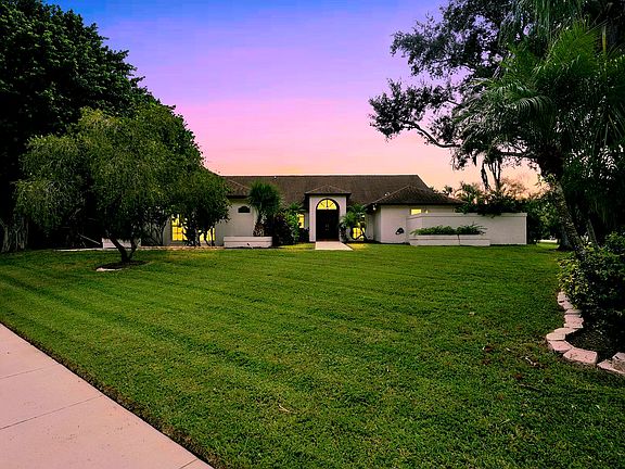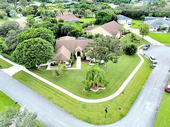 Live the Golf Cart life just minutes to showgrounds! Incredible Equestrian-esque estate on massive corner lot in secluded and quiet Cul De Sac of gorgeous Meadow Wood. Just 30 seconds to golf cart path for miles of carting, biking pathways, & golf cart to WEF in mins! Awesome freshly painted walls adorn the property inside and out. Wood flooring so inviting & warm in bedrooms and timeless Equestrian Saltillo clay tiles throughout. This property is so beautiful, can be reimagined with Restoration Hardware Industrial decor and has majestic, towering Ficus trees providing shade in massive yard perfect for the pupsters! The playground is newly built, most new appliances, roof is newer! In a 1.2-1.7M community, this property is yours to personalize and has a perfect layout for outdoor kitchen! This 4 bed plus office, 2.5 bath estate is ready for you to entertain, watch kids, and overlook beautiful pool views while in kitchen and living rm. This is an amazing community for golf carting, Halloween, the Holidays! You will absolutely love it here as much as we do, come see our incredible community!