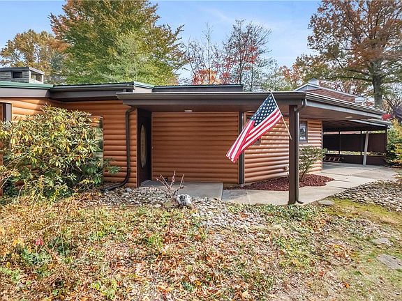 This lovely mid-century log cabin-style ranch perfectly blends rustic charm with modern comfort. With a new roof, 4 spacious bedrooms and 2 full baths, this home offers ample space for family and guests. Enjoy the beautiful fireplace and open-concept living area, designed for seamless gatherings and single-story living. Step out to a large screened-in porch and in-ground pool, perfect for entertaining. It is beautifully landscaped with trees imported from all over the country, offering a tranquil space to unwind and enjoy the serene surroundings. Whether hosting lively gatherings or seeking a quiet retreat, this home provides the perfect setting for any occasion.