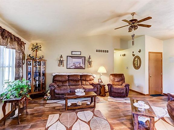 Country living in this well-kept ranch home with 2680 square feet of living space. Quiet rural setting on 1.3 acres, yet close to conveniences. Step outside to the fresh country air, beautiful landscaped yard, and covered deck to sit on & enjoy the breeze. Home features 4 bedrooms total, 3 full bathrooms & 1 half bath, and a 2 car attached insulated garage. Home has some handicap features. Full finished walk-out basement complete with bedroom, full bathroom, living room, laundry room, and sunroom. Upstairs has quality oak kitchen with appliances included. This home has everything you've been looking for!
