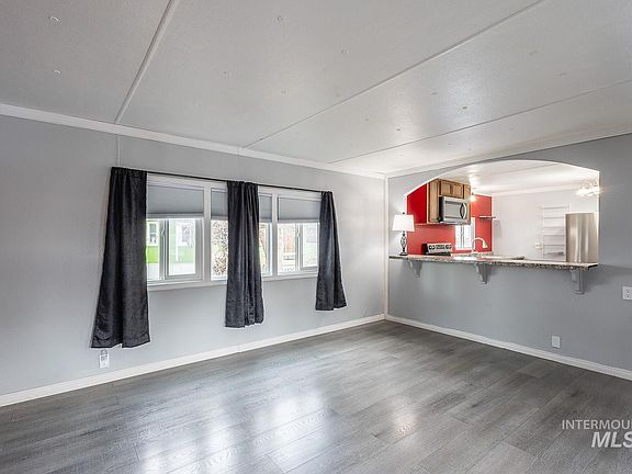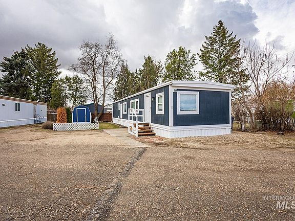 This move-in ready single-level manufactured home is situated on a rented lot and offers a beautifully renovated living space. Featuring newer kitchen counters, and an open-concept layout, this home feels modern and inviting. With LVP flooring throughout the common areas and cozy carpet in the bedrooms, comfort is at the forefront. Enjoy year-round comfort with central air and heating. This well-maintained property includes 2 bedrooms, 1 bath, and a functional laundry room. The lovely front yard, partially fenced, is perfect for entertaining, and there's a large shed for additional storage! Located just minutes from the Boise River and Snake River, with park rent already covering water and sewer at only $600/month, this home is an incredible opportunity!