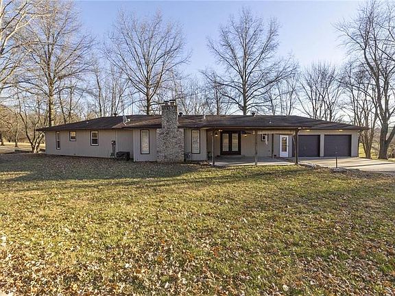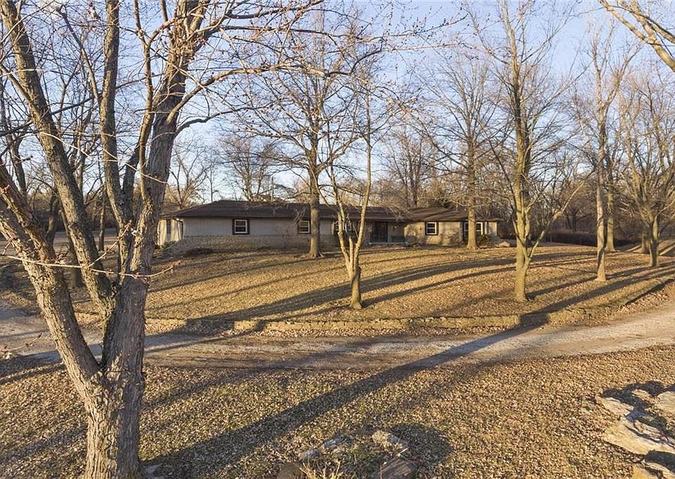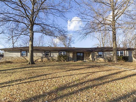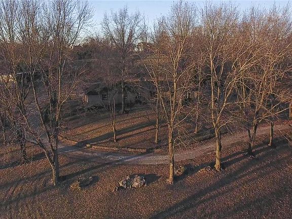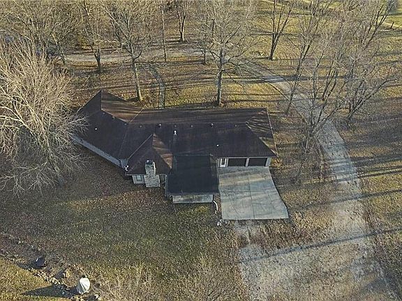 Sprawling ranch on BEAUTIFUL treed and fenced 4.724 acre tract with gated entry, two car attached garage and outbuilding w/3 oversized bays. Unique stacked stone fireplace, entry wall is stacked stone, replacement windows, wet bar, LARGE kitchen, HUGE laundry room with dual closets/pantry, covered front porch, covered patio, family room with 2nd fireplace in lower level, unfinished basement area has 2nd staircase to garage, makeup counter & dual closets in master bedroom, vinyl siding & wrapped soffits & fascia.