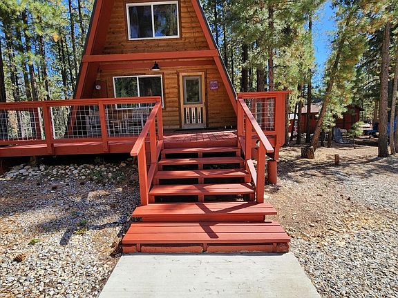Beautiful, remodeled A frame cabin in Swains Creek. 5-year-old roof, half log siding, energy efficient windows for a fresh new look. Two beautiful new decks to enjoy the mountain life. Inside there is tongue and groove throughout, granite counter tops, beautiful wood laminate flooring are sure to please. Warm near a pellet stove in the open living area. Upstairs two nice sized bedrooms to accommodate family or visitors. Located on a quiet street in lovely Swains Creek Pines. Fully Furnished. Swains Creek offers many amenities including dust-controlled roads, stocked fishing pond, playground, pavilion, airstrip, tennis/basketball courts. Don't miss out on this incredible cabin!