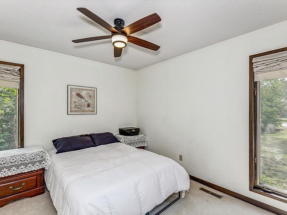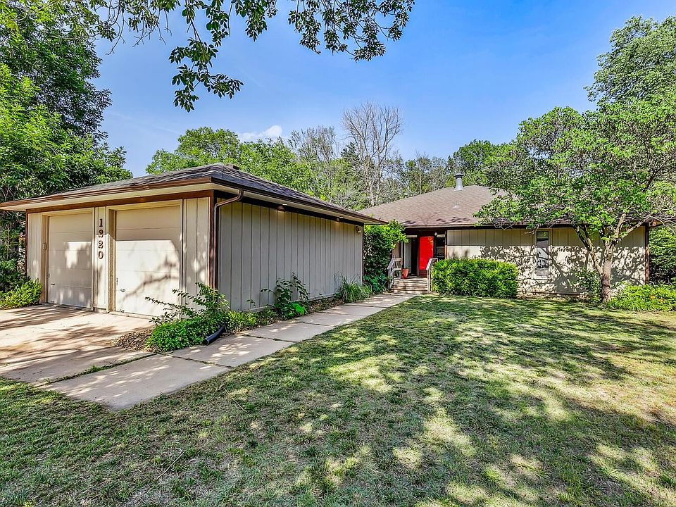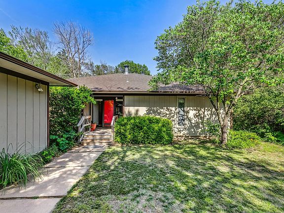 Custom-built home with midcentury modern elements that are Timeless! See how this home perfectly blends formal and funky styles resulting in a unique and aesthetically pleasing living space. The house sits on a spacious half-acre lot surrounded by lush woods, providing a serene and private setting. The exterior of the house incorporates midcentury modern design principles, characterized by clean lines and large windows that allow the serenity of outdoors to penetrate through the home. Upon entering the home, you're greeted by a large foyer. This area leads to a sunken pit style living room adorned with a warm fireplace and an abundance of natural light. The living room embraces the midcentury modern style, with sleek and warm wood finishes. Adjacent to the foyer is a dedicated private office space that boasts a professional atmosphere and features large built-in bookshelves to accommodate your personal library. The kitchen is large with amazing pantry space and a breakfast nook area. Off the kitchen is a formal dining area that exudes elegance mixed with an inviting vibe. Perfect space for entertaining family and friends as it opens to the living area and out to the deck! The Owners Suite is spacious with a large window looking out onto a private wooded area. Truly you will feel like you are sleeping in the woods! The Owners Suite also includes a large vanity, spacious closet and walk-in tile shower! There are 2 additional bedrooms on the main floor with large closets and so much linen storage space and built-in clothes hamper. “SEE THE LIGHT” as you move downstairs, you will find the perfect space to hang out! The custom green wet bar and groovy retro lighting is so much funky fun! The family room area has a half bath, decked out with shiny bright nostalgic wallpaper, that will be the conversation with all your friends! Storage is ample downstairs and comes with a freezer and fridge. The HVAC is newer too! Come see this home that is unlike any others available today! You will be so surprised to see such an amazing home nestled in Indian Hills area! 3 Bedrooms, a main floor office/library, main floor laundry, basement with wet bar and family room, oversized two car garage, half acre lot…. And it’s affordable! What a groovy deal!