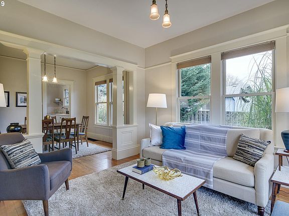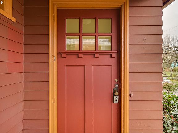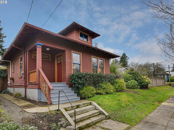 Charming Bungalow style home in close in location, walking distance to MAX, groceries, food carts! Formal LR + DR w/wood floors, hi-ceilings, period fixtures + woodwork. Kit w/butcher block ctrs + subway tile backsplash, dbl sink,gas cooking. 2 main level bedrooms-both w/wood flrs, hi-ceilings + set on either side of bath w/hex tile floors, pedestal sink. Serene yard w/gardens,tool shed.Huge attic w/pull down stairs