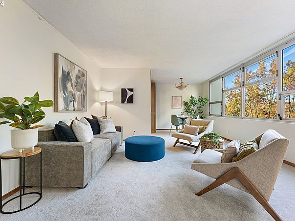 Here's your opportunity to own in the Fontaine, Portland's Iconic Mid-century building in the heart of the action! Minutes to restaurants, coffee, shops and groceries Quick access to any commute and transportation hub. A spacious Great Room flooded with natural light from walls of windows looks into the tree canopy. The open walls of the possible Second Bedroom expand living spaces or offers a den/office area. Enjoy new interior paint, new carpets and priced to bring your personal touches This is an active community of homeowners with a financially solid and involved HOA. Building features include an outdoor patio offering a relaxing space with the soothing sounds of fountains, a lovely spot for barbecues and family or homeowner events. You must see the expansive 365 degree city and mountain views from the roof (plus fantastic fireworks viewing)! The cozy chairs and couches in each roof corner provide a comfy spot to read or just relax. The rooftop community room is available for meetings or small gatherings. In the basement find individual, secure storage units. Explore this fantastic place to call home!OPEN SAT 11:30AM - 1:00pm