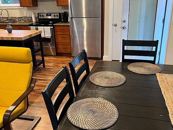 Nice furnishings, vaulted ceilings, cosy and spacious. All utilities included including WiFi and streaming services. In a nice quiet neighborhood but within walking distance to many restaurants, coffee shops, bars, and food trucks. This is a fully furnished unit with all utilities paid. It's a wonderful home and everyone has loved it. Quiet/ safe, yet close to everything. minimum 30 day lease but would prefer longer. Long term lease could negotiate a discount.