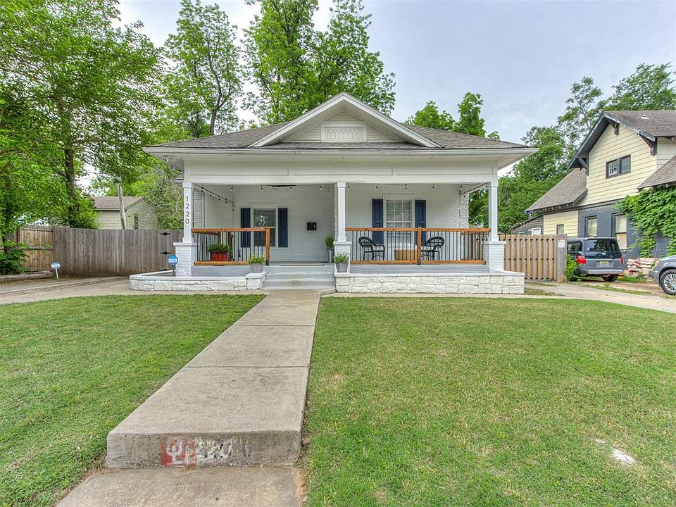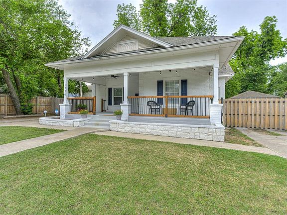 This renovated 1930s bungalow is a true gem, offering historic Classen-Ten-Penn charm and thoughtful modern upgrades. It features a rare automatic two-car garage, complete with a fully renovated 449 sq ft 1-bedroom garage apartment. This square footage is not included in the listing. This additional living space comes with retro appliances and is ready to accommodate a tenant or welcome your guests in style. It's a perfect opportunity to generate some extra income or provide a comfortable space for your loved ones. You will love the spacious front patio on the main property, including cedar railing and porch fans. Boasting 3 bedrooms and 2 full bathrooms, this home provides ample space and storage, including a rare walk-in closet in the master and mind-blowing kitchen counter space for this area. Another highlight is the full-sized laundry room and pantry for storage. Both bathrooms are updated, including the converted tankless water heater. Venturing into the backyard, you'll discover a beautifully manicured yard with mature and pruned trees for safety. It boasts an entertainment space that is perfect for hosting gatherings with friends and family. The new fencing and secure automatic gate offer privacy, peace of mind, and the standby natural gas generator for Oklahoma winters.