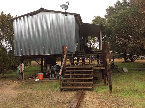 On 7 foot stilts, parking under house, 28 foot covered porch. Needs to be finished out the way you would want it. Only one available on river. Livable as is. 16X48. Front yard has many oak trees, wild plums tree, mountain laurel. Wildlife, deer, birds, turkey. 2.15 acres Unrestricted property. Live like you want. 200 feet Little Blanco River. Able to park vehicle under house. Owner is a licensed real estate agent. No owner finance.