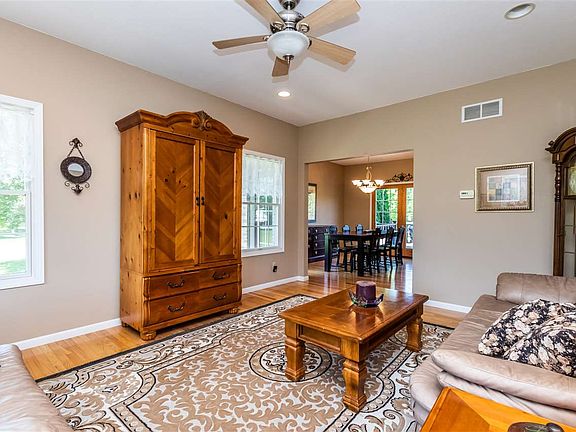Private paradise home with 4 - 5 bedrooms and 3.5 baths that sits on 2.29 acres with beautiful views from every window. It's country living in town, close to everything, and on quiet dead end street. The kitchen offers quartz countertops, large island, breakfast bar and a beverage center. The family room has a vaulted ceiling and fireplace. The master bedroom includes a full master suite. The finished basement has a 5th bedroom (no egress) and full bath and rec. room. Great outdoor space with large deck, pool, playhouse and an invisible fence for your pets. This home comes with several walk-in closets and additional cabinet storage in laundry. Formal living/dining and a grand 2 story entry. Visit today and stay for a lifetime.