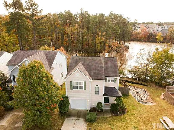 Great location! Minutes to shopping, restaurants, RTP, I-40 & MORE! Situated on a cul de sac street with nice lake views. Cozy Living room w/ corner gas log fireplace and ceiling fan. Living room opens to the Kitchen which has a breakfast bar with overhang, perfect your bar stools. 3 bedrooms and 2 full baths plus the laundry is upstairs. One car garage. Deck overlooks nice fenced backyard with Orchard lake views.