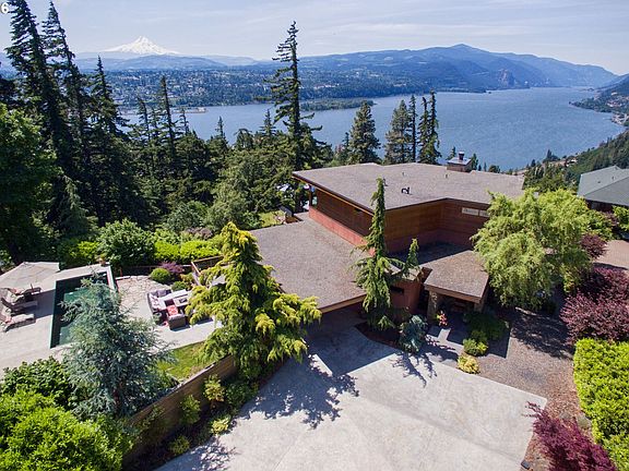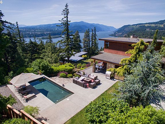 One Owner! Rare, Architecturally Designed Contemporary Private Retreat; 4655 sqft designed to maximize appreciation of expansive W views of the Gorge, Columbia River & Mt Hood. Gourmet kitchen with chef's range & flamed granite countertops; ideal for entertaining. Master retreat up. Open floor plan for diverse use of living spaces. Private wind protected outdoor entertaining patios; views,in ground pool & mature plantings. The Ultimate!