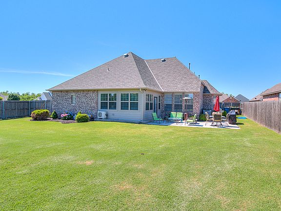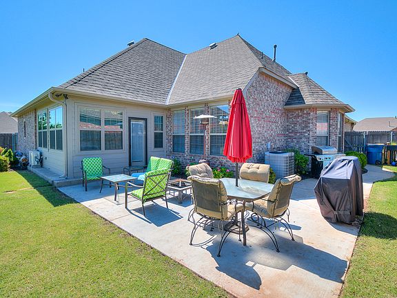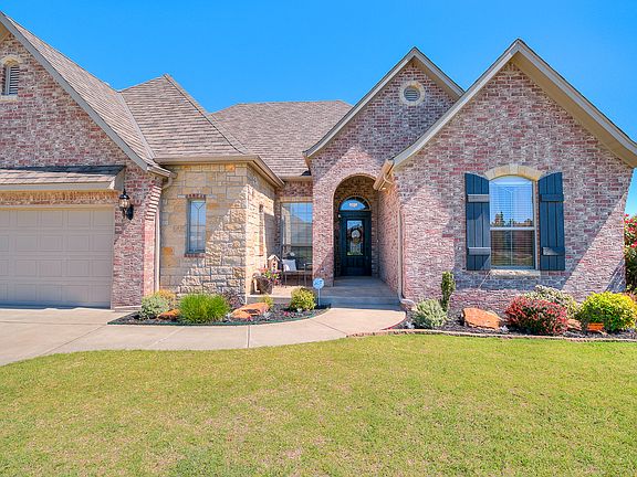 Beautiful Home in El Reno with Great Curb Appeal. Stone and Brick Veneer, Pretty Landscaping, Wood Floors in the Entry and Study, Crown Molding, Tall Ceilings, Study with French Doors, Family Room has Ceiling Fan, Fireplace and is Open to the Kitchen and Dining, Kitchen has Eating Space, Breakfast Bar, Granite Counter tops, Center Island, Built-In Oven and Microwave, Smooth Top Electric Range and Under Mount Sink, Large Master Suite has Tray Ceiling and Ceiling Fan, Master Bathroom has Huge Walk-In Closet, Double Vanities, Shower and Jetted Tub, Bedrooms have Full Bathroom and Walk-In Closets, Bonus Room and Storm Cellar, All on a Corner Lot. Come see this Beautiful Home Today.