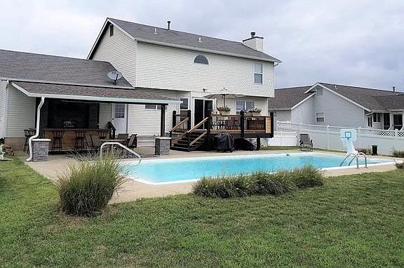 Be the envy of all your friends this summer! Wonderful 3 bedroom/2 Full Bath/2 Half Bath with an inground salt water pool PLUS a simply stunning outdoor bar! Open floor plan, formal living room & dining room, family room w/ brick fireplace and updated shiplap wall. Breakfast area that opens to a beautiful deck. Kitchen features stainless steel appliances, refrigerator that stays and new gas stove. Spacious Master Suite w/soaking tub, double sink vanity, separate shower and walk-in closet. You will be surpised at the size bedroom #2 with two closets! Partially finished LL with 1/2 bath and plenty of room for storage. Outside, you'll find great curb appeal with decorative brick & vinyl front & covered porch, but it is the back yard that is the OASIS here! You will be planning your outdoor get-togethers on the deck (grill stays) and hanging out at the amazing covered bar with concrete counter top, lights and stacked stone decorative wall. Level lot w/composite fenced yard.