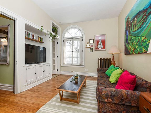Really sweet, bright top floor unit faces North and East at the back of the building on the corner of 13th and Powderhorn Terrace, facing the park. Front and back back balconies are shared amenities. It’s like a tree house in the city! Parking is on the street only, but owner says its not been a problem. Plus there is a designated room in the basement for bike storage. Also, communal free laundry downstairs!