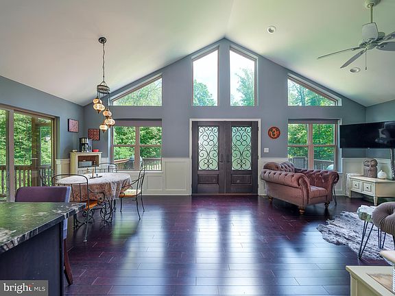 ~Showings begin Sunday 8/16 ~ FOUND! Your very own modern and inviting Bucks County retreat ~ Enjoy the stunning views and the picturesque serenity from this modern, chalet-style home situated on 1.6 acres in gorgeous Haycock Township! From the moment you arrive at the property you will feel an instant sense of relaxation and enjoyment. Steps lead up to open and refreshing main living space featuring hardwood floors, vaulted ceilings and a gorgeous wall of windows! An inviting living room features a stone fireplace and is open to a fabulous kitchen with leathered granite countertops and breakfast area with doors to a charming screened in porch! A hallway leads to a wonderful Master Suite with wonderful closet space and a stunning full bath with shower; 2 additional sun-filled bedrooms, a full bath with fantastic design elements, and laundry complete this floor. Downstairs, this exceptional home continues with a family room area that is beautifully designed and ready for entertaining and play with an additional Kitchen style space for cooking and entertaining enthusiasts, a stunning 3rd full bath and a large home office area that offers wonderful possibilities and privacy for those out of town guests! Enjoy taking in the scenery or star-gazing from the expansive 2nd floor deck and enjoy relaxing by the cozy fire-pit or wonderful fenced in area with patio! An awesome 22x22 outbuilding is wired for electric for all of your hobbies, storage and toys! This home is truly a spectacular find nestled in a most stunning setting!