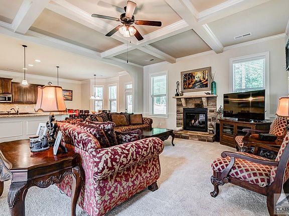 Lane Creek Plantation is a first class golf community found in the award-winning North Oconee School District in Oconee County near Hwy 316 and Hwy 78 and a short drive to the University of Georgia! The entryway opens up to coffered ceilings, arched passageways, iron rail spindles and custom trim details. The expansive kitchen is an entertainer's dream with granite countertops, Travertine backsplash, double wall ovens, gas range and rich wood cabinetry that includes an oversized island with seating. The main floor open concept provides maximum benefits from the fireside family room (with gas logs) creating the perfect mood for winter nights. There is a large bedroom and full bath on the main floor that could possibly serve as an in-law suite. Upstairs is the expansive master suite with a huge sitting area featuring an electric fireplace. There is a large walk in closet and master bath with double vanities and separate tub and shower. Three more bedrooms and two additional full baths are located upstairs. There is also a covered back porch with lush landscaping all throughout the 1+ acre lot. The house has privacy from the front road with an island of trees protecting the expansive front yard from public view. There is plenty of room in the back yard for building a fire pit or a playscape for younger children in the wooded area. You must see this home in person to take in all that it offers.