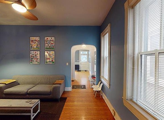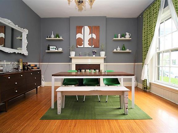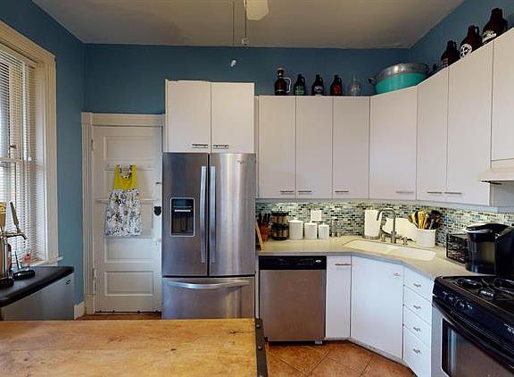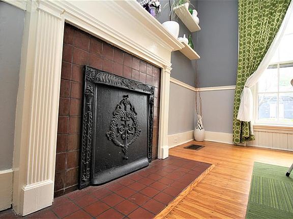Beautifully kept brick 2 story with exposed brick walls, ornamental fireplace, original floors and large rooms throughout! Updated kitchen with an abundance of white cabinetry and solid surface counters, gas stove, tiled floor and glass tile backsplash. Both baths have been updated with subway tile, new sinks, lighting, and flooring. The master bedroom offers a walk-in closet plus a wardrobe built-in! An exposed brick wall along the hallway adds character to the second floor with great room sizes in all 3 bedrooms and original ceiling height. The covered deck overlooks the landscaped, fenced backyard with enough room to add off street parking if you prefer. Washer and dryer to remain with home. Roof and gutters recently replaced! Move-in condition! Check out the virtual tour!