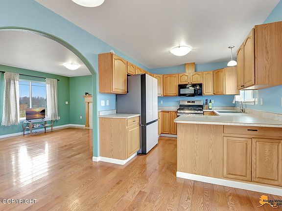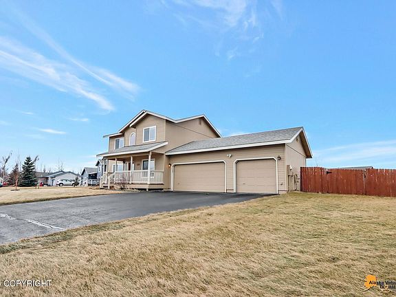 Wonderfully maintained 4 bedroom, 2.5 bath, 3-car garage home in a peaceful Palmer neighborhood only 35 minutes from JBER. This home features panoramic mountain views, a covered porch, fully fenced yard, storage shed, greenhouse, perennials, landscaped yard, gas fireplace, hardwood and LVP floors and newer SS appliances. Won't last long.