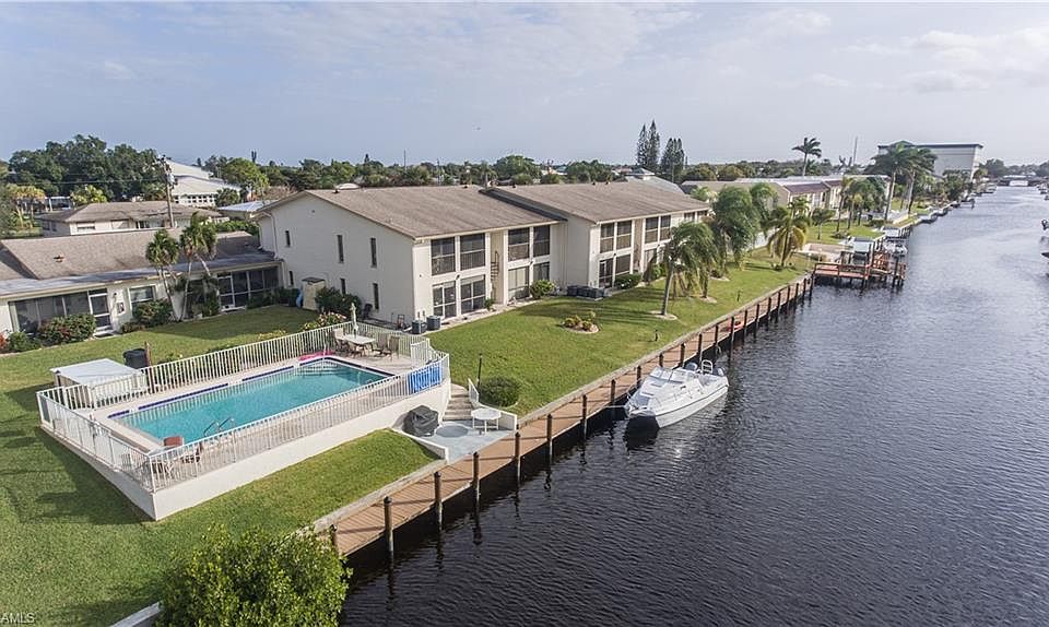 Check out this Spacious GULF ACCESS Waterfront CONDO with only one bridge to the River! This unit features 2 bedrooms and 2 baths with a Spacious kitchen, as well as an extra room that can be used as a Den, Dining room, or office. Large master has a walk-in closet and attic access for storage. The large screened lanai has Hurricane shutters and a stairway down to the BOAT DOCK and HEATED POOL! Community boat dock is first come first serve. Relax on your oversized lanai and watch the boats go by! This 55+ community has covered parking and is in a PRIME Location within walking distance to Downtown Cape Coral featuring tons of Restaurants & Shopping! Don't miss out on this Fantastic Opportunity!