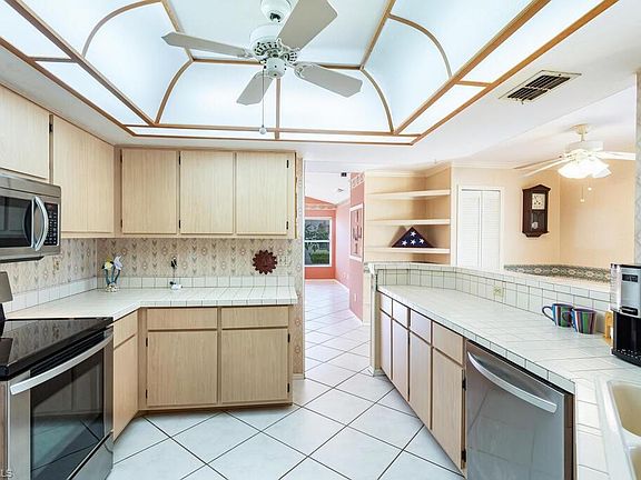 H.16408 - Check out this Sunny & Spacious 4BR+Den, 2BA pool home built by Catalina Homes. The Pebble Beach floor plan is a truly remarkable home located in the heart of Palmetto-Pines Country Club. This home offers a country club feel without the HOA fees and restrictions. Entering the home, you are greeted by a spacious formal living and dining room that lead out onto the oversized screened lanai and large solar heated pool. This split floor plan offers a bright and airy family room, large kitchen, breakfast room and 3 guest bedrooms with a shared pool bath. The oversized Master En Suite offers a large raised den or sitting room, cathedral ceilings, two walk-in closets and an oversized bathroom with dual sinks and large walk-in shower. Additional amenities include a tranquil backyard with fruit trees, an expanded 2-car garage, and much more. In 2020 the Pool deck was updated with a New paver deck and New solar heated pool system. In 2015 the house was re-plumbed, and a new stamped driveway was added. Lastly, this remarkable home is located in the beautiful neighborhood close to shops, restaurants, schools and just minutes to Fort Myers and the sandy white beaches of SW Florida.