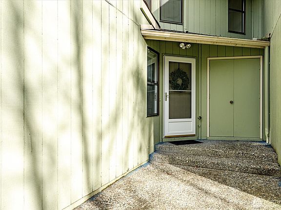 This townhouse style condo allows for the upper or lower story to be your main living space. Both bedrooms have a bath immediately outside the bedroom, meaning it's great for sharing living space with others. Both stories have private feeling patios off the back that have just been repainted, and the upper patio even has a cute little peak-a-boo view of Oak Harbor city and bay. HOA covers landscaping and building insurance (you control your own utilities). Dogs and cats allowed. A small storage closet on the front patio allows for easy storage of tools, holiday decor, or bikes. Two parking spaces are immediately in front of your unit. Interior is well kept and feels roomy. VA approved! Bring your own plans for little touches and updates.