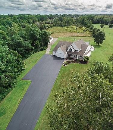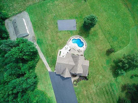 Picturesque Private Estate on 10 acres. 5383 total sqft. Pride of ownership shines! Perfection and attention to detail throughout. Open floor plan. Front and back staircase. Master bedroom on first floor with spa-like ensuite. Current dining room being used as private office. 3/4 bedrooms on second floor with two full baths. Bonus room is being used as 4th bedroom with private back staircase. Professionally finished lower level with egress window that can be used as a true in-law. Private entrance from garage. 2 additional bedrooms in lower level w full bath. In-ground pool, basketball court and additional separate garage that is 30 x 40 highlight the property. Horses Permitted. Tax records show 3533 sqft and additional 1850 sqft lower level. Come discover what awaits you.