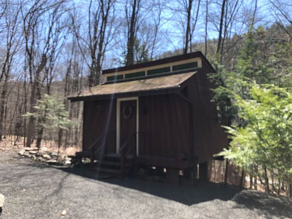 Peaceful Beautiful cabin nestled in the woods with Big Bushkill trout stream frontage. !! Extremely well maintained home and in excellent condition, inside and out. Spacious well built 16’ x 15’ detached shed. (can become a cottage)