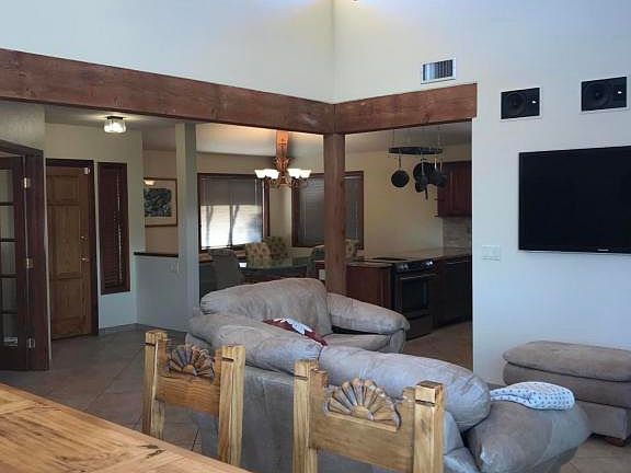 Indoor and outdoor living at it's best! This home is warm and welcoming with it's 15' high, wood beam ceilings in the large, open great room you are immediately greeted as you enter by a beautiful mountain view and tons of natural light from the 2 oversized, picture windows. Updated throughout and meticulously maintained, the kitchen has top of the line cherry cabinets, granite countertops, SS appliances, ceramic tile and laminate wood floors. Newer Heat Pump unit, roof recently re-coated, all new outdoor irrigation front and back yards. Enjoy outdoor living next to the sparkling pool and in-ground spa, which are surrounded by pristine and lush landscape and complete privacy from all neighbors. This home speaks for itself and will sell today! Agent related to the Seller Hurry before it's to late....