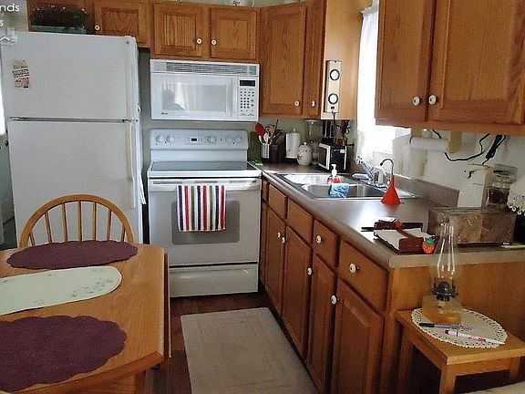 This lot has 2 water slips (one whole dock). Furnished, Shed. Community building has gathering room, showers, restrooms. Covered patio w/picnic tables.