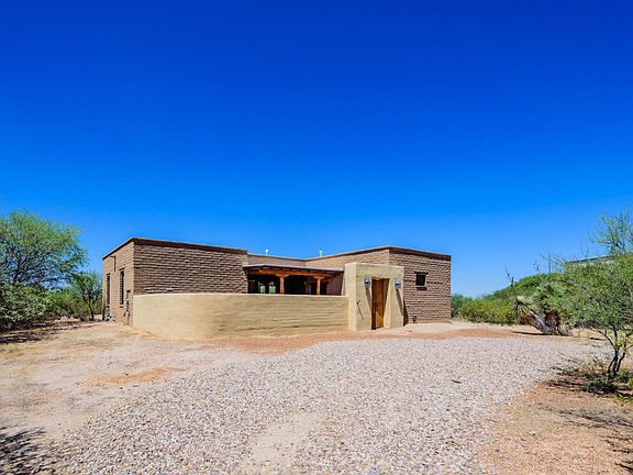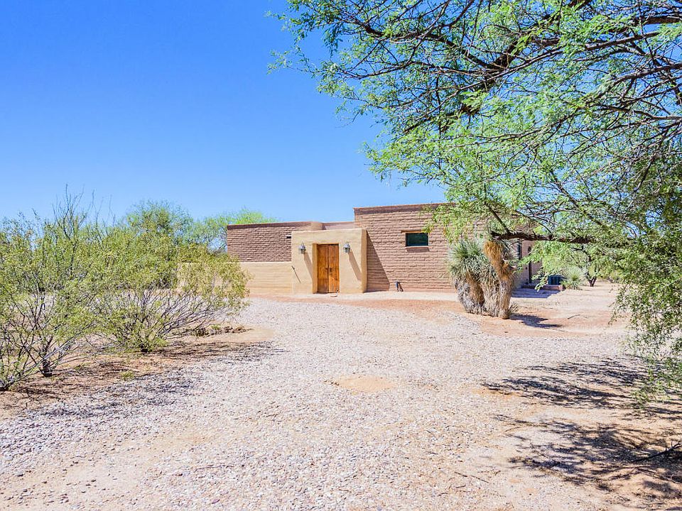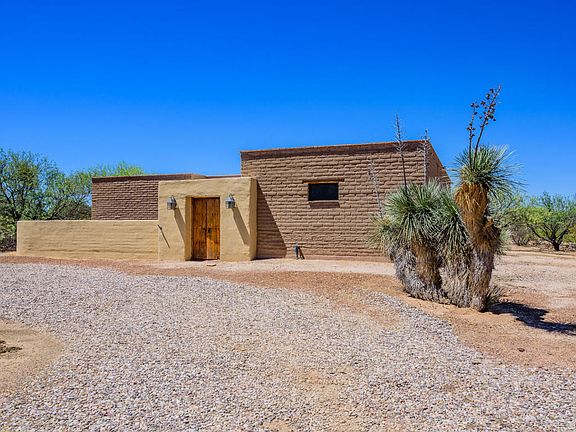 Welcome to this gorgeous authentic adobe home. When you pull up, you will be greeted by double wood gates with antique hardware into private courtyard entry. This home boasts magnificent views of the Rincon mountains. The inside has beautifully scored colored concrete floors, massive wood beams on the ceiling. This home was designed with a split bedroom plan. Solid wood custom doors throughout. Don't miss this unique home on an acre lot! Plenty of room to build shop, pool, & RV parking with NO HOA!
