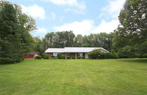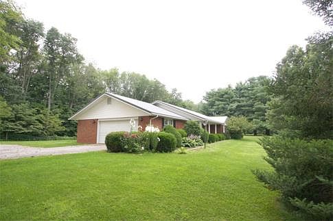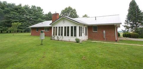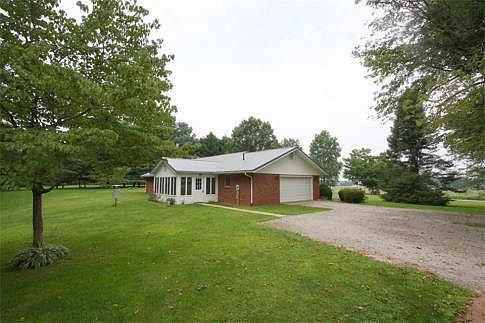 Beautiful brick ranch home nestled on 2 country acres, wonderful location on the corner of Shipley Road and Hilltop Drive, features include 3 bedrooms and 2.5 baths, massive living room highlighted by a gas log fireplace, adjoining formal dining room, pretty cabinet filled kitchen with breakfast nook, convenient main level laundry, relaxing sun room/family room off the kitchen, master bedroom suite with private bath, attached 2 car garage plus a detached 48 x 32 pole barn/garage/workshop, rocking chair covered front porch, truly impressive home with an exceptional setting, priced to sell at $180,000.