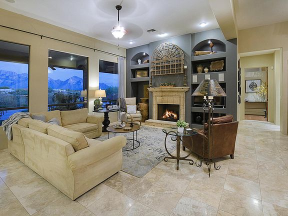 *DESERT ELEGANCE* ENCHANTING HOME IN ORO VALLEY FILLED W/CHARM & CUSTOM DECOR! HIDDEN TREASURE IS PERCHED ON PREM .84 AC HOMESITE! POPULAR EAST FACING EXPOSURE BORDERS NATURAL DESERT...PANORAMIC'' PUSCH RIDGE'' MTN VIEWS EMBRACE YOUR ENTIRE HM! HEAVENLY BKYD- ENJOY ALFRESCO COOKING-BUILT IN BBQ/GRANITE CTR, COV'D PATIO- COZY WOOD BURNING FP, SPARKLING PEBBLE TEC POOL/SPA, GRASS,MATURE TREES & KIDDIE PROOF FENCE! ORIGINIAL OWNERS- HAVE TASTEFULLY DECORATED & CARED FOR THIS HOME! UPGRADES GALORE- GREAT RM, WALLS OF WINDOWS, STONE/WOOD FLOORS, 8 FT WOOD DRS, CHERRY CABINETRY, GRANITE SLABS, DACOR /SUB ZERO/ASKO APPLIC, OVERSIZED ISLAND, POT FILLER, COURTYARD ENTRY, MASTER SPA BATH W/FREE STANDING TUB- HUGE SHOWER, ALL CUSTOM WINDOW TREATMENTS , EXPANDED ''3 CAR ''GAR W/SEP STORAGE! TRUE GEM!